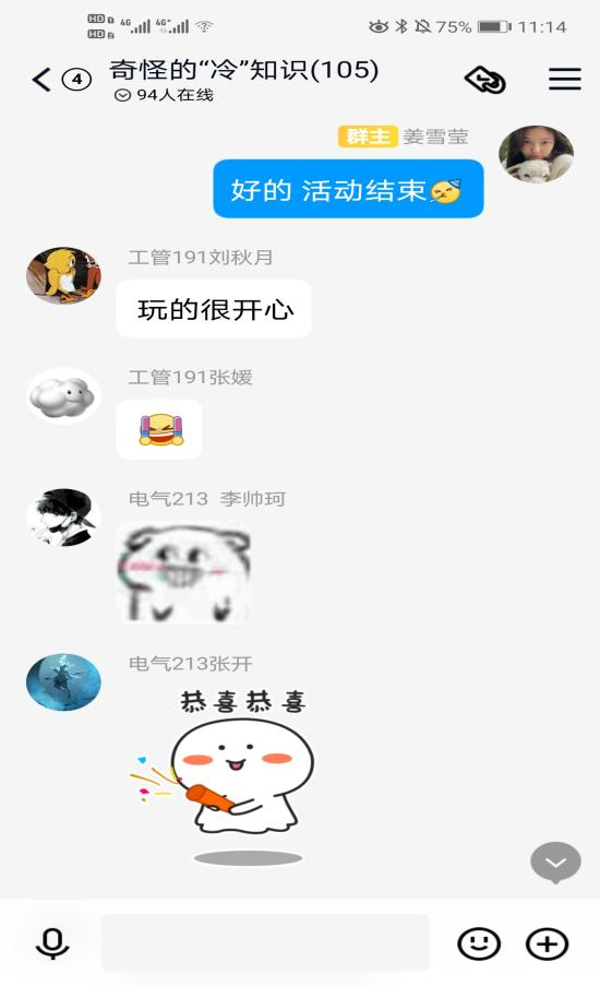 比赛开始前,由负责人提前创建QQ群,准备题目,参与同学进群后,由负责人向选手讲解比赛详细规则及注意事项,比赛开始时,负责人发放题目,每题答题时间限时30秒,在比赛结束后统一统计获奖名单。在比赛过程中同学们积极踊跃回答问题,现场气氛十分热烈,结束后,同学们也意犹未尽,仍继续热烈的讨论。