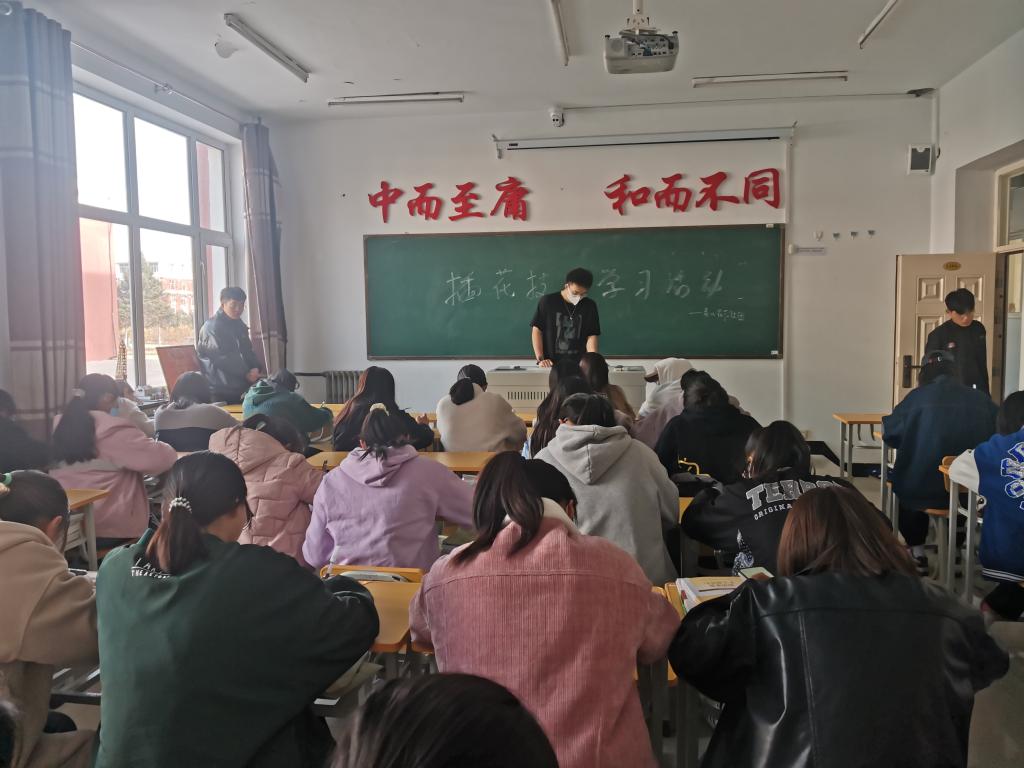 插花艺术即指将剪切下来的植物的枝、叶、花、果作为素材,经过一定的艺术和技巧的加工,重新配置成一件精致完美、富有诗情画意且能够体现大自然美和生活美的花卉艺术品。在活动过程中,由风景201班贾牧凡为大家讲解插花知识,从花材、容器、色彩搭配等方面,详细介绍了精美插花的艺术造型和技巧手法。