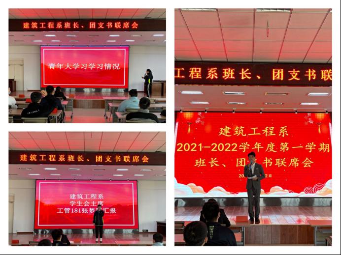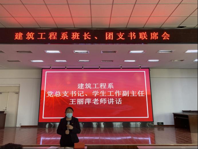 11月2日,建筑工程系在2教2508召开班长、团支书联席会,建筑工程系学生工作副主任、各辅导员莅临,全体班长及团支书参与了本次会议。