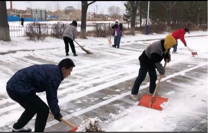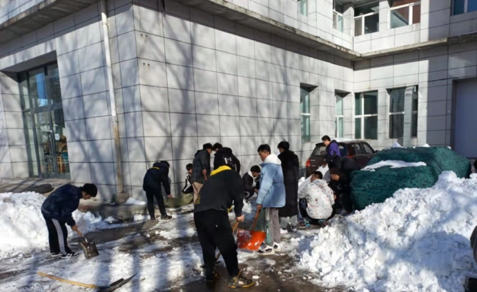 寒冷的冬日,天气虽然很寒冷,但同学们的热情让这次的清扫行动变得温暖。校园路面雪花覆盖,清扫难度系数大,学生党员带领同学们分工有序,默契配合。一次次扫雪、铲雪,即使衣服被雪覆盖也没有停下行动,只为了让全校师生通行安全、方便。