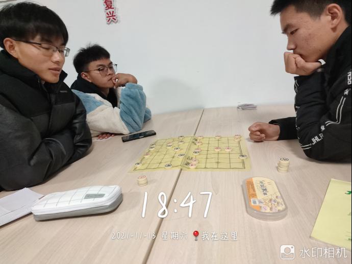 “兴尽计穷征战罢,松阴花影满残枰。”为丰富同学们的课余生活,缩短同学们之间的距离,营造良好的竞争氛围,11月14日的周日晚,在公寓主任的带领下,七公寓在二楼自习室进行了象棋比赛。经过这次比赛,增加的同学们之间的友谊,增进了积极拼搏的竞技氛围,同时也给予了同学们一个勇于展现自己的舞台。
