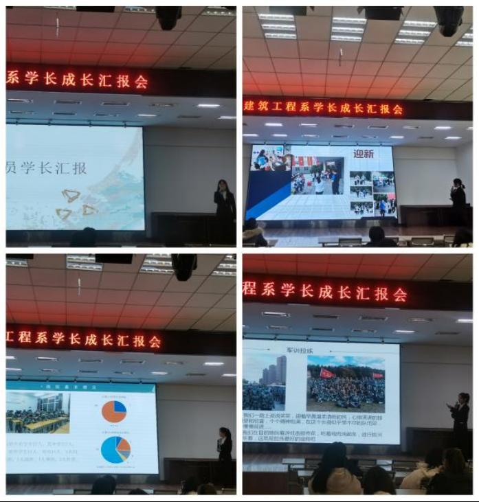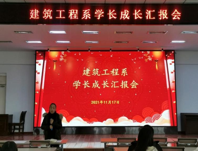 为响应我院学长制的号召,展示学长工作风采与工作成果,建筑工程系于2021年11月17日在二教2508举行2021级学长成长汇报会。建筑工程系总支书记学生工作副主任王丽萍、辅导员于敦续、辅导员蔡爽、辅导员宋雪微、组织员赵文波出席本次汇报会,2021级部分同学到场参会。