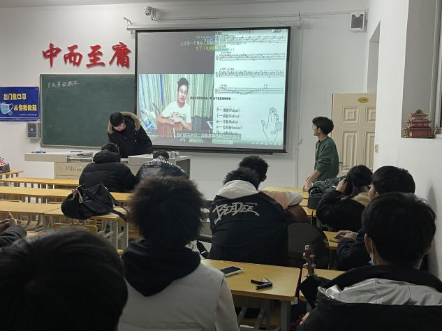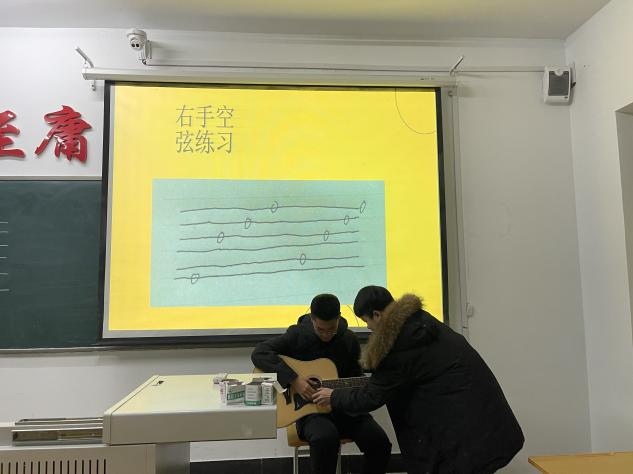 活动开始,你我吉他社社长徐畅做简单发言:“吉他是深受青年人喜欢的乐器,在校园里更是大家的“宠儿”,本次活动的宗旨是培训无吉他弹奏基础的同学,同时帮助其他有吉他弹奏基础的同学提高吉他演奏水平。随后社团干部李可棠开始进行吉他教学,耐心细致的向同学们介绍基本乐理知识,活动现场气氛热烈。