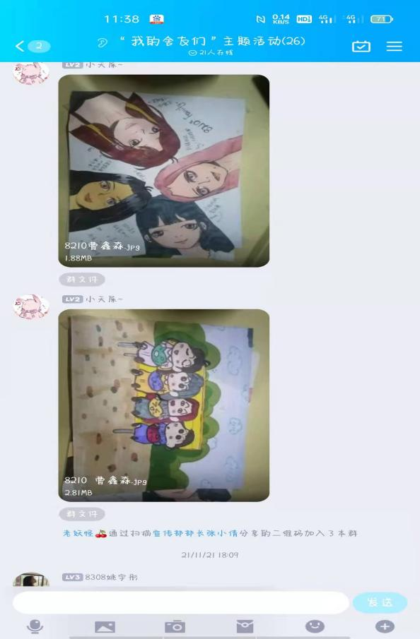 为了丰富同学们的课余时间,增进彼此的感情,促进公寓的和谐,2021年11月21日—24日,八公寓管理委员会在公寓主任及宣传部,组织部的组织下在线上QQ群展开本次我的舍友们绘画活动。
