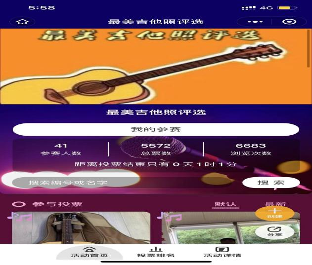 此次活动为投票评奖机制,选取前几名票数较高的几名同学,给予活动分奖励。此次活动开展取得了同学们的热烈响应,众多成员参加,本着为了让同学们更加热爱艺术,发展乐器兴趣的原则,让更多的学生能在你我吉他社学到更多有用的关于乐器知识。