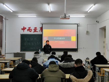 土木192李涛对土木212班的同学讲解大学里的学习方法并且分享了自己在学习过程中的心得。他预祝在本次期末考试中每位同学都能取得优异的成绩。