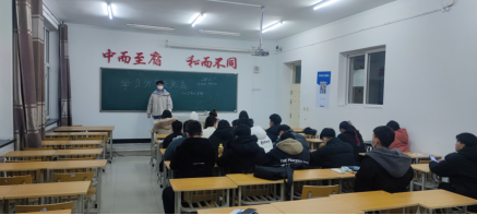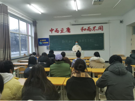 风景191陈蝶为风景201班的同学讲解自己在学习时如何保持正确的学习观,并希望各位同学能够静下心来,以饱满的精神状态认真复习,考取好成绩。
