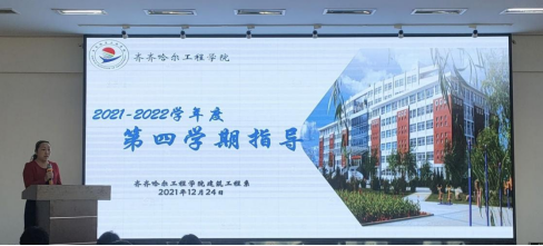 会议开始,由建筑工程系党总支书记、学生工作副主任王丽萍解读了《2021-2022学年度第四学期实施方案》,明确第四学期。