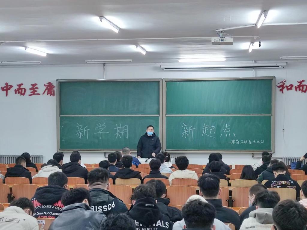 为贯彻落实疫情防控措施,引导学生尽快适应新学期的学习生活,落实学校各项工作。2022年3月7日,建筑工程系辅导员于敦续召开新学期土木21级年级大会。