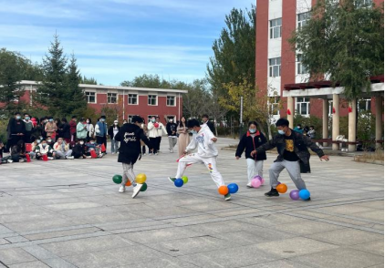 随后现场组织了一场踩气球的游戏活动,学生们积极参与,展示了我系学生们的青春气息。