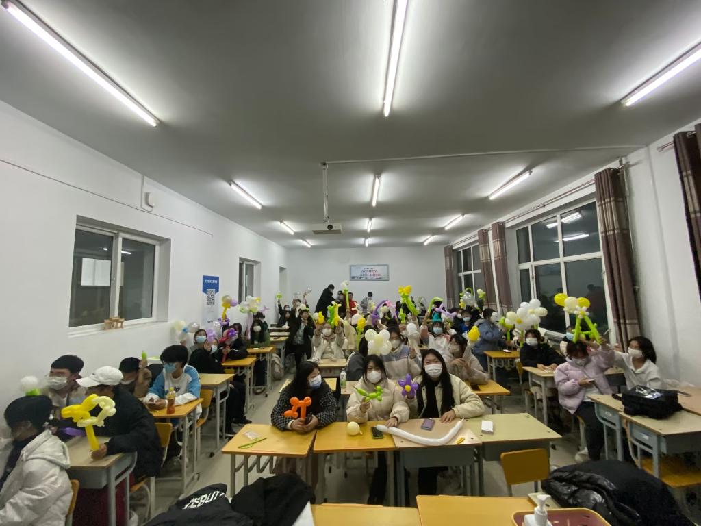 首先,社团干事向大家分发气球和打气筒等材料。在制作这一块,社长罗科莹带着大家一起做,并且在群里分享制作气球花的视频。同学们在做气球花的过程中互帮互助,思想与实践相碰撞,共同去制作气球花。最后,同学们都将自己制作的气球花带走。