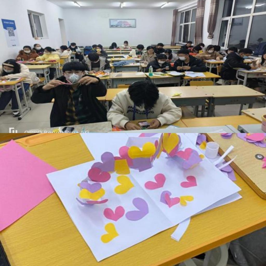 本次活动,社团准备了各种颜色彩纸和工具,各各小组互相提出意见,开始制作属于他们的立体花书,把情感变成色彩把爱意装扮成立体花书的样式,每一位同学都同入制作其中,一件件精美的花书亮相出来。