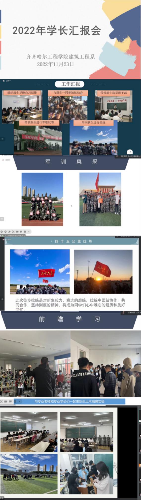 为更好地落实三全育人,发挥学长制作用,总结前期经验,建筑工程系于11月23日举办2022年学长汇报会,建筑工程系全体辅导员以及23名新生学长相聚云端。