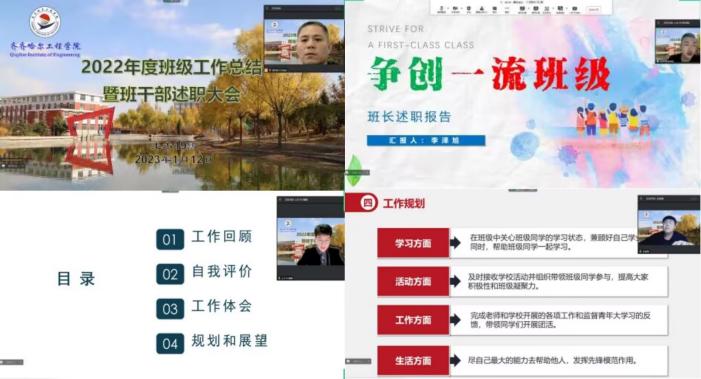 为进一步加强班级建设,积累下步工作经验,提升学生班团干部综合能力素质,土木工程专业19级于1月12日下午16时利用腾讯会议召开了班团干部述职大会,辅导员于敦续出席会议,19级全体学生参加会议。