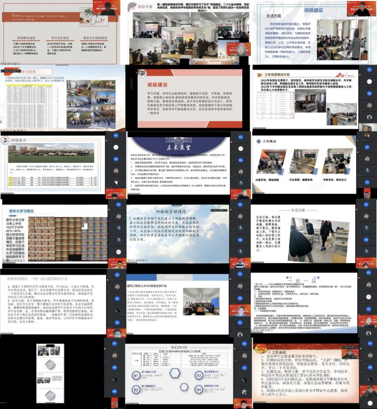 反思是最好的学习,反思是学习的基础,反思是人格的体现。为促进班团建设,提升班团干部的工作能力,2023年1月13日晚,辅导员蔡爽老师组织召开了2022-2023学年度第一学期班团干部述职会议,此次述职是通过线上的形式进行。工程管理专业21级、工程管理专业20级、土木工程专业20级、工程管理专业19级9个班级的班长和团支书参加了此次述职。