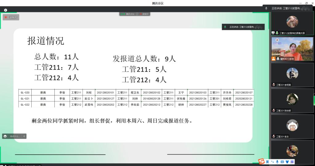 在2月11日19时,生涯导师李俊通过腾讯会议召开了第四学期生涯导师指导会暨第四周的学习汇报活动,会议由李俊老师主持,指导的成员全部出勤。