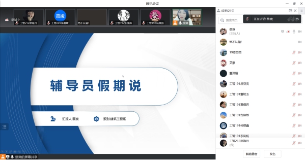 为进一步做好学生假期学习教育工作,保障假期学生学习不松懈,确保同学们度过一个充实、快乐、有意义的寒假,2023年2月24日,建筑工程系蔡爽老师组织开展了“辅导员假期说——说假期学习、生活”会议。此次学习由建筑工程系全体同学自愿报名参加。