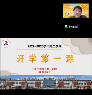 2月27日19时,建筑工程系土木工程专业19和21级组织召开开学第一课。会议由辅导员于敦续主持,土木工程专业长钟美慧老师、土木工程专业生涯导师和全体学生及家长参加。