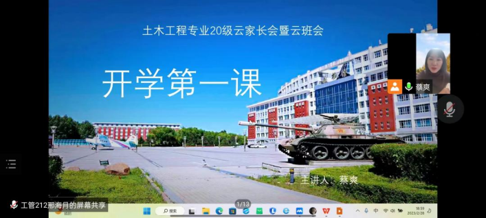 为了进一步加强学校与家庭、教师与家长之间的密切联系,增进每一位家长对学校工作的了解,同时更全面地了解自己的孩子在校情况,真正达到家校携手共同培养孩子的目标。2月28日19时,辅导员蔡爽老师召开土木工程专业20级开学第一课暨云家长会。土木工程专业专业长钟美慧、生涯导师、学生家长及学生参加此次会议。