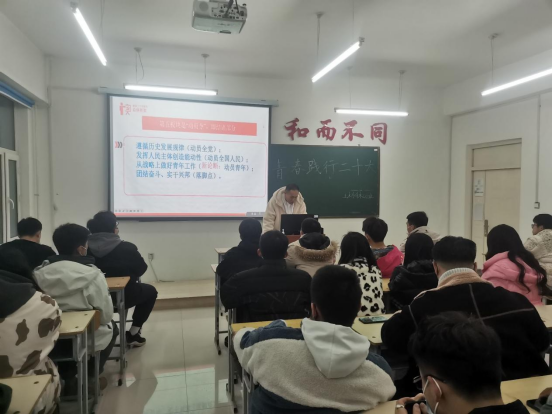辅导员刘子豪老师组织土木工程2022级六个班级于3月13日深入学习贯彻党的二十大精神,坚持以习近平总书记关于青年工作的重要论述为指引,坚守为党育人、为国育才的初心使命,开展“青春践行二十大”主题班会,以实实在在的举措深入“青年心”、激发“青年志”、引领“青年行”。