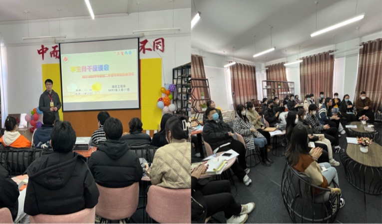 工管191班杨雲作为毕业年级学长,在座谈会上说“优秀的学风不但是种氛围,还是种动力,能够促使同学们积极向上,要学会制定学习目标,更要把目标转化为具体的步骤”。