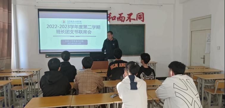 为有效提高土木工程专业22级班级的工作效率,提升业务水平,做好对前一阶段的工作总结,落实下一阶段各班级发展团员、学生管理、助学金评定等工作重点,土木22级辅导员刘子豪老师于2023年5月10日在2#1404召开班级工作推进会,本次会议22级班长团支书全员参加。