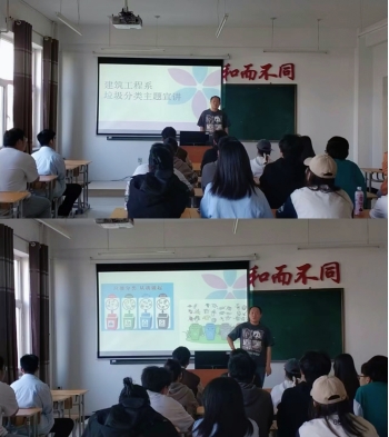 为进一步推进全环境立德树人工作,倡树新时代美德健康生活方式,普及垃圾分类知识,增强我系学生垃圾分类的意识,建筑工程系在垃圾分类宣传周开展相关主题宣讲会,本次会议由建筑工程系学生会指导教师刘子豪老师主持。