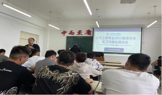 8月4日14点,辅导员刘子豪在二号教学区2511组织召开土木工程专业2022级专升本实习与就业恳谈会,土木工程专业专升本全体同学参加。