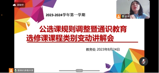 首先老师介绍了新学期开设的公选课规则调整和通识教育选修课程类别变动情况,再次重申选课时间、毕业要求、变动内容以及注意事项,提醒同学们按需选择相应的课程,尽快的按要求修满学分。也祝愿同学们在修满课程的同时也可以根据自己的兴趣爱好选择合适的公共选修课。最后李莹莹老师给同学们强调了具体的选课方面学分的要求,针对同学们的疑问,也做出了解答,如艺术素养类同人文艺术类是一类课程等。
