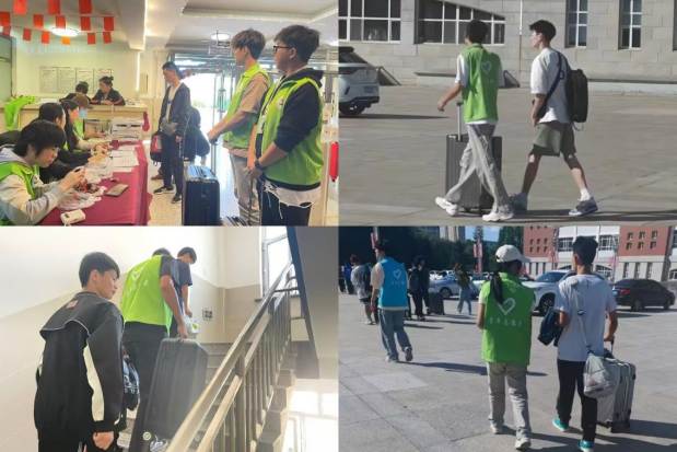 在迎新期间,青年志愿者们在学校门口静待新生的到临,并且热情的上前帮助学弟学妹们搬行李;带领新生到达公寓办理入住手续;询问指引新生去买备品等。此外还在公寓门前架起遮阳棚,为家长们提供了较为舒适的等待环境。