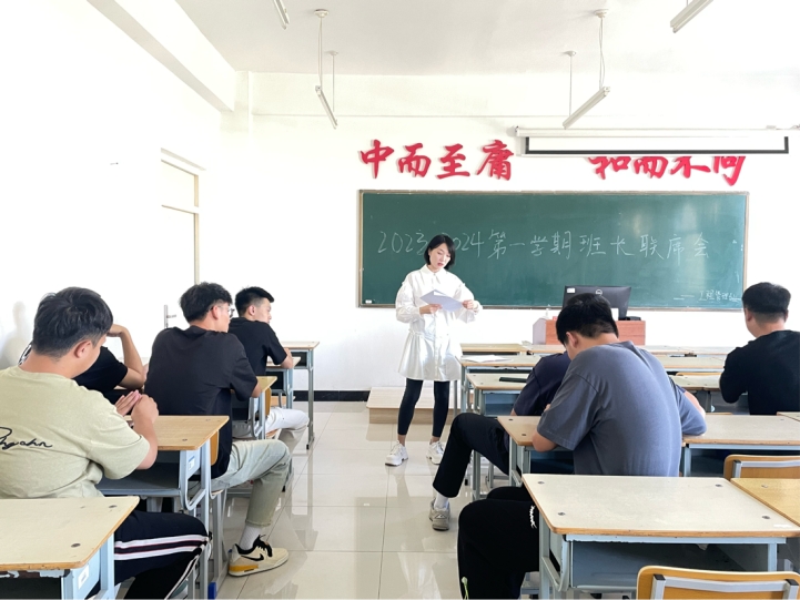 9月2日,建筑工程系辅导员蔡爽在2#1406进行2023-2024第一学期班长联席会,土木20级、工管20级21级班长共同参加本次会议。