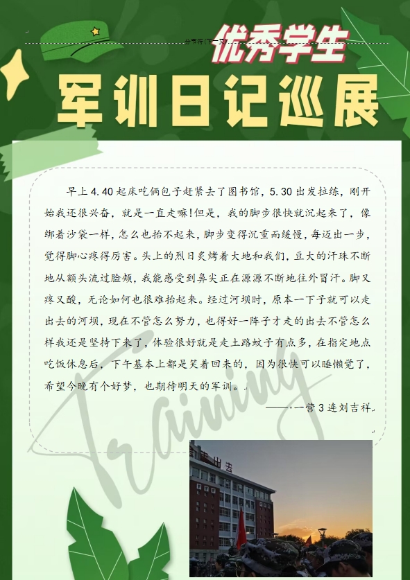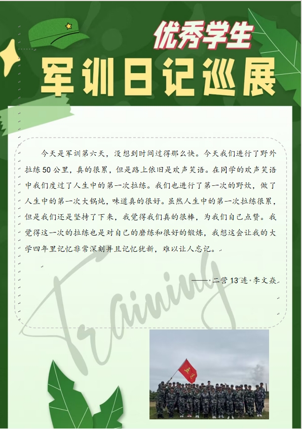下一条:【新生军训】2023年优秀学生军训日记巡展(五)