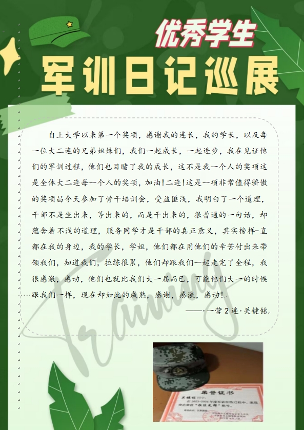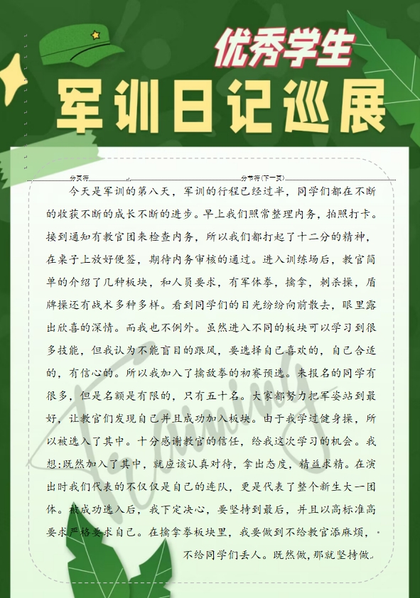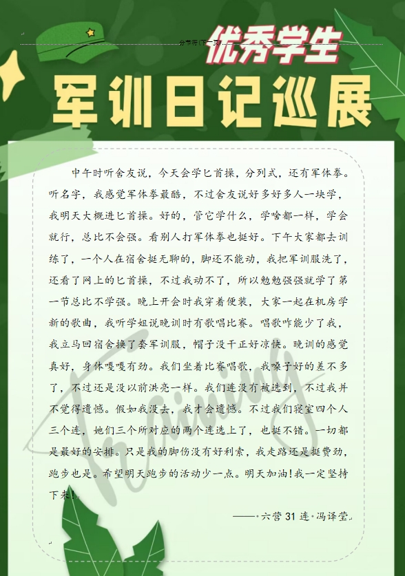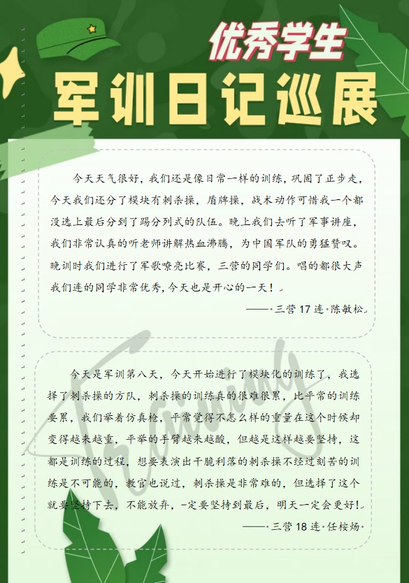 【新生军训】2023年优秀学生军训日记巡展(八)