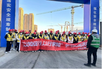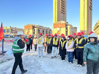 辅导员刘子豪首先为参会同学发放安全帽及衣服,并要求同学们在进入施工现场后要有较强的自我保护意识,确保班会安全有序的进行。让我们认识了建筑结构,建筑材料,建筑机械等内容,了解钢筋结构的施工工艺并参观了建筑施工的流程。