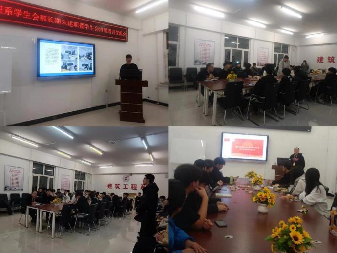 为了更好的总结本学期学生会工作的开展情况,以及社会实践学期相关工作的安排和有序开展,建筑工程系学生会指导教师刘子豪老师于12月14日17时在二教2409组织开展了学生会主席和各部长、部员交流会。学生会指导教师刘子豪与学生会全体成员交流近期工作心得并做出学生会下一阶段工作安排,学生会执行主席王骏达做学生会定位及各部门职能培训,学生会各部长总结汇报本学期部门工作开展情况存在问题与不足以及下一阶段的工作计划。