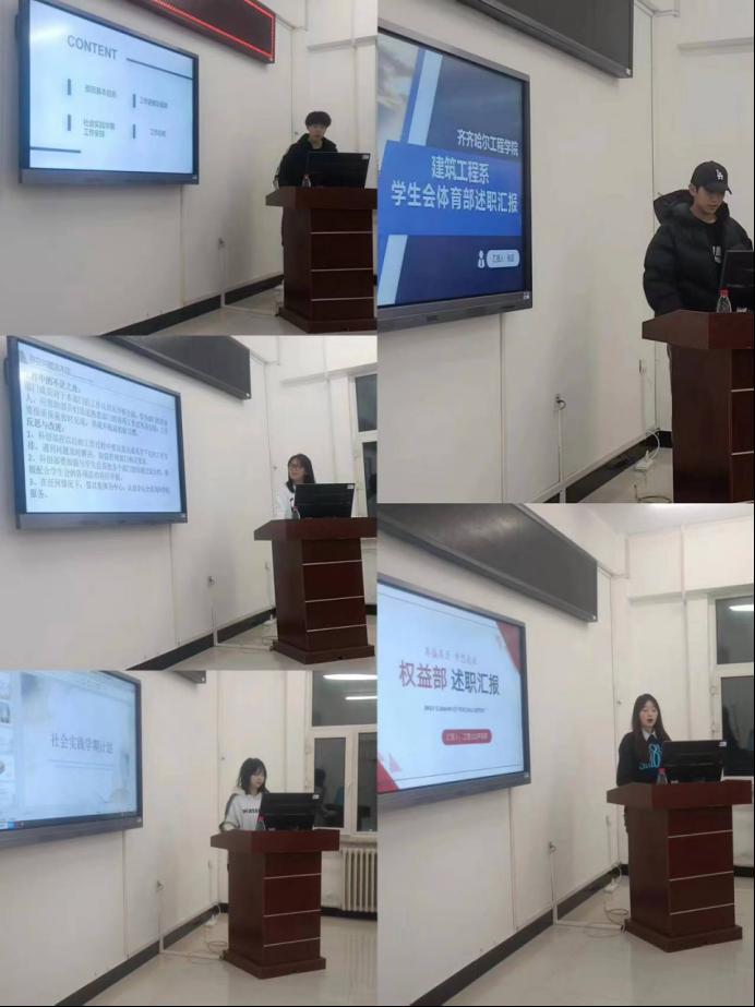 此次交流会在轻松愉快的氛围中展开,首先由学生会执行主席王骏达对学生会全体成员进行学生会定位与各部门职能培训帮助学生会全体成员明确工作职责,接下来学生会各部长进行述职,学生会执行主席、指导教师在述职之后进行了提问及评议。学生会各部长以ppt的形式汇报部门自身建设情况、工作开展情况以及工作中存在的不足及下一段的工作计划。最后学生会指导教师与学生会全体成员共同交流分享了自己在工作中碰到的各种困难、解决方案及这段时间内工作的感悟,并做出了下一阶段学生会的相关工作安排。