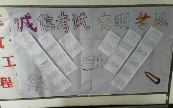 为进一步加强考风考纪工作,增强学生诚信意识,端正学习态度,严肃考风考纪,涵养学风、端正考风,引导广大同学认真备考、诚信应考,营造“明纪律、守诚信”考试氛围,近日,建筑工程系在全系范围内组织开展考风考纪宣传教育。