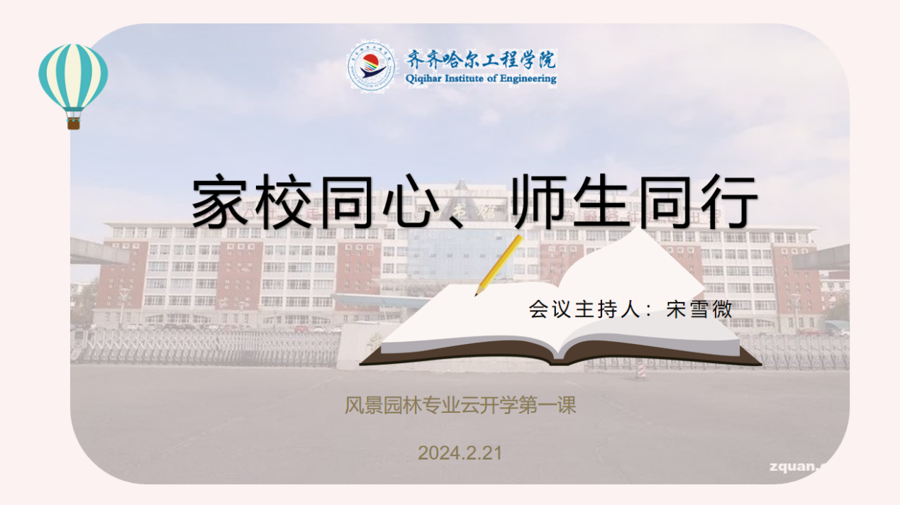为进一步做好家校共育,让家长更好的了解学生在校期间的学习和成长;让同学们清晰的认识到自己的收获和不足;加强家校之间的沟通与合作,共同促进学生的全面发展。建筑工程系辅导员宋雪微于2024年2月21日下午16:00召开“家校同心,师生同行”风景园林专业线上家长会云班会。本次会议由辅导员宋雪微主持,风景园林专业长、全体学生、生涯导师、学生家长参加。