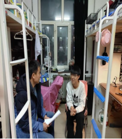 3月3日晚,建筑工程系辅导员蔡爽,于敦续,陈星月,以及生涯导师徐立志深入走访11公寓学生寝室,与学生面对面了解详细情况,解决实际问题。
