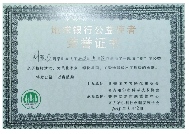 在志愿服务活动中,刘珉志同学获得齐齐哈尔市地球公益使者志愿者服务证书、积极参与校内校外的志愿服务,散发出自己的一份光芒。在谈及自己做志愿的经历时说:志愿者是无偿的,而不是像开业、打工,而是不计报酬,做志愿者的好处是给予了他人的帮助,同时也得到了收获自我的一种成长。有人说,自律的本质是自我觉察和自我管理。刘珉志在每一次的志愿活动中敞开心扉、关心他人,在帮助别人的过程中,他学习着志愿者身上无私奉献的精神,善待他人,关心他人,把自己的全部都给社会和人民,这样的善举是值得的。他始终认为“赠人玫瑰,手留余香。”是做志愿者的美好收获。