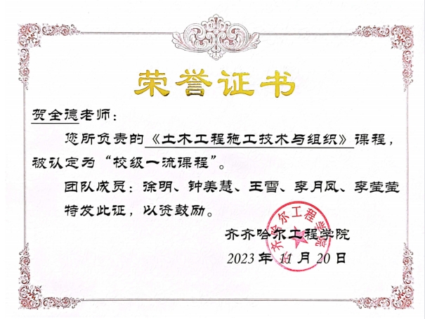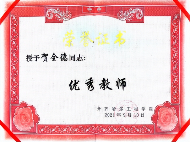 贺全德,男,中共党员,高级工程师、校聘副教授。1974年8月生,1998年7月毕业于东北林业大学交通土建专业,现任齐齐哈尔工程学院建筑工程系教师,土木工程专业教师党支部书记、专业助理,兼任齐齐哈尔工程学院建筑产业学院副院长。同时还是土木工程专业测量兴趣小组、《嘉木茶社》社团指导教师。