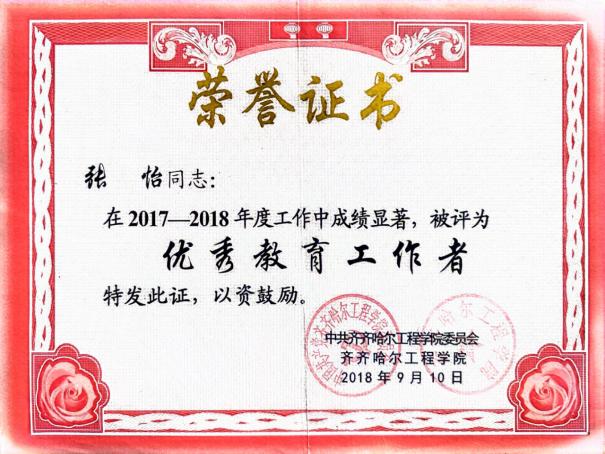 张怡,女,中共党员,学士学位,1994年11月出生,2017年8月参加工作,现任齐齐哈尔工程学院建筑工程系事务员,工程管理专业学生党支部组织委员,建筑工程系基层工会主席。参加工作以来,多次荣获学校“优秀教育工作者”“优秀共产党员”“优秀工会积极分子”“优秀工会干部”荣誉称号。