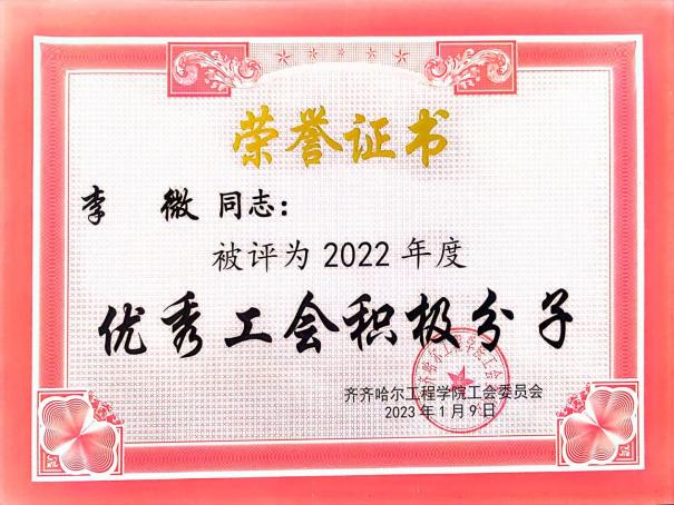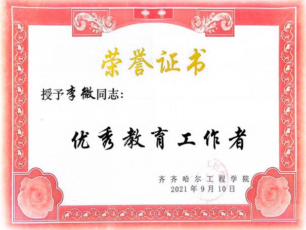 李微,女,中共党员,学士学位,2017年7月参加工作,现任建筑工程系实验技术人员。参加工作以来,多次获得“优秀教育工作者”“优秀工会积极分子”“优秀生涯导师”等荣誉称号。