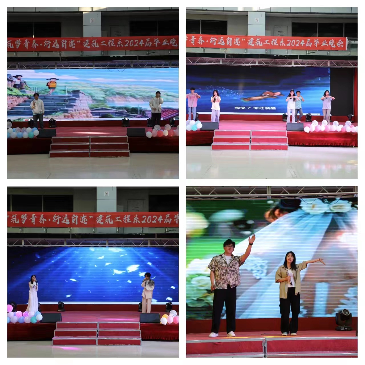 有朋自远方来,又赴远方,我们为融入社会走进来,为服务社会走出去。在分别来临之际,建筑工程系于2024年5月25日晚18时在汽车大楼三楼举办"筑梦青春,行远自迩"毕业晚会,本次晚会2024届全体毕业生参加,学生工作处负责人王丽萍、建筑工程系党总支书记、负责人徐明、工程管理专业长曲梦露、土木工程专业助理贺全德、张晶晶,毕业班辅导员和专业教师、生涯导师们到场观看晚会。