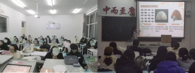 活动过程中,大家积极参与,整体气氛活跃。随着一件件漆扇作品的诞生,同学们都感受到了中华民族传统漆扇之美,最后,王月邀请小组代表分享作品,大家积极表达设计理念和作品意义。