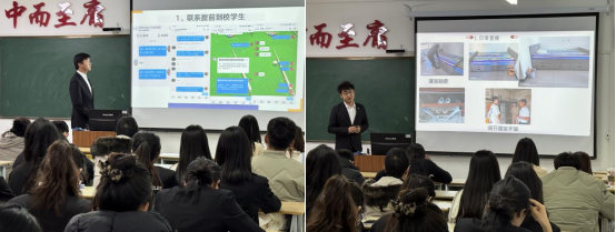 土木221班罗科莹作为智能建造241班学长团队代表上台进行工作总结:“在任职过程中,我深刻体会到学长身上的责任感与使命感。学长的职责需要贯穿新生班级建设始终,未来的日子我仍然会和新生同学保持沟通与联系,在引领他们发展的同时能够和学弟学妹们共同进步。”