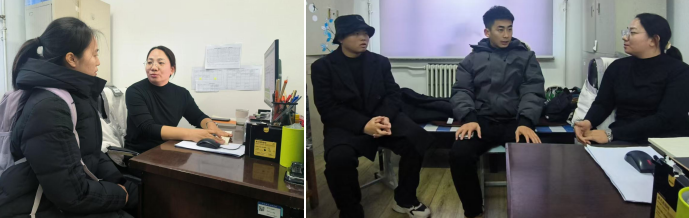 在办公室中,袁老师与生涯学生进行温暖亲切的交流。此次交流袁老师旨在对复习方法存在困惑的学生制定个性化复习计划,提升学习效果。袁老师依据不同学生的学习状况、专业特点及课程要求,分别给出了适合的复习建议,为学生们答疑解惑,传授高效复习的技巧与策略。