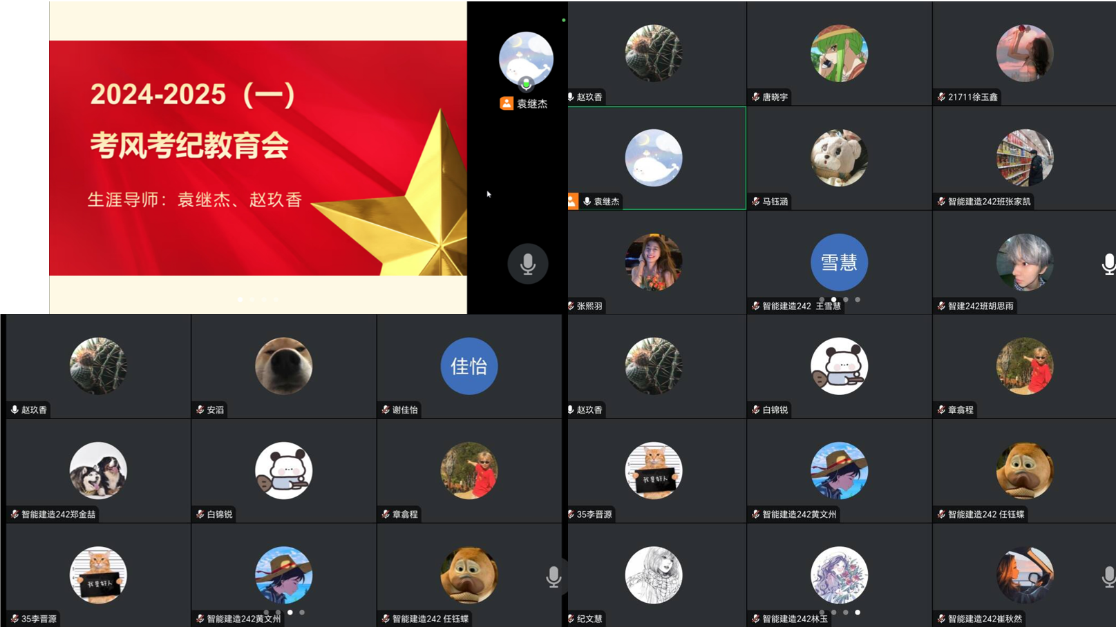 12月12日晚8点,袁继杰老师和赵玖香老师通过腾讯会议联合为学生深入解读考风考纪的重要性。袁继杰老师首先以直截了当的方式,明确指出了考试作弊的严重后果,并深刻阐述了其对个人成长的负面影响。她强调了遵循学习规律的重要性,并用“想成为什么样的人取决于自己”这一激励人心的话语,激发了学生们对学习的热爱和追求。赵玖香老师随后详细介绍了考试流程,使学生们对即将到来的期末考试有了清晰的认识。她进一步强调了学校绩点制度以及毕业证和学位证的重要性,并鼓励学生以积极的态度和严格的自我要求来准备大学生涯的第一次期末考试。