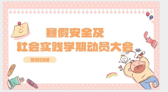 为激发同学们参与社会实践的热情,明确实践目标与意义,同时加强同学们的安全意识,确保社会实践项目的顺利进行。特此,建筑管理工程系财管23级于1月3日线上进行社会实践学期动员会暨安全教育会。本次会议由财管23级辅导员李娆主持,财管23级全体同学参加。