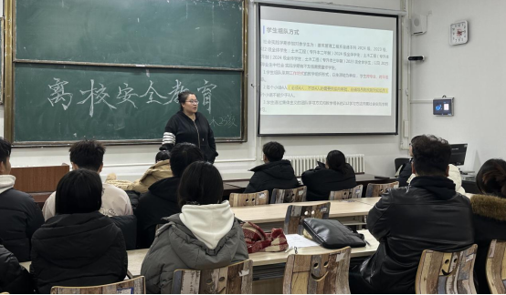 随着期末考试周的来临,同学们即将离开熟悉的校园,踏上回家的征程。在这个特殊的时期,安全问题尤为重要。特此,辅导员王丽伟主持的离校安全教育会议于12月31日在三号教学区1101教室如期举行,土木23级同学全体参会。
